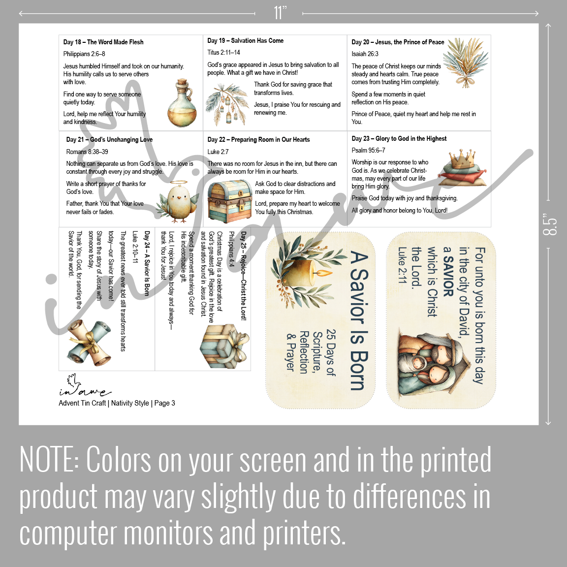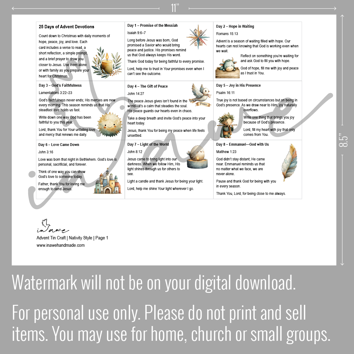 Christmas Advent Devotional Printable | DIY Advent Craft and Family Activity | 25-Day Countdown with Scripture and Prayer - inAWE Handmade Gifts, Personalized Gifts, Spiritual Gifts