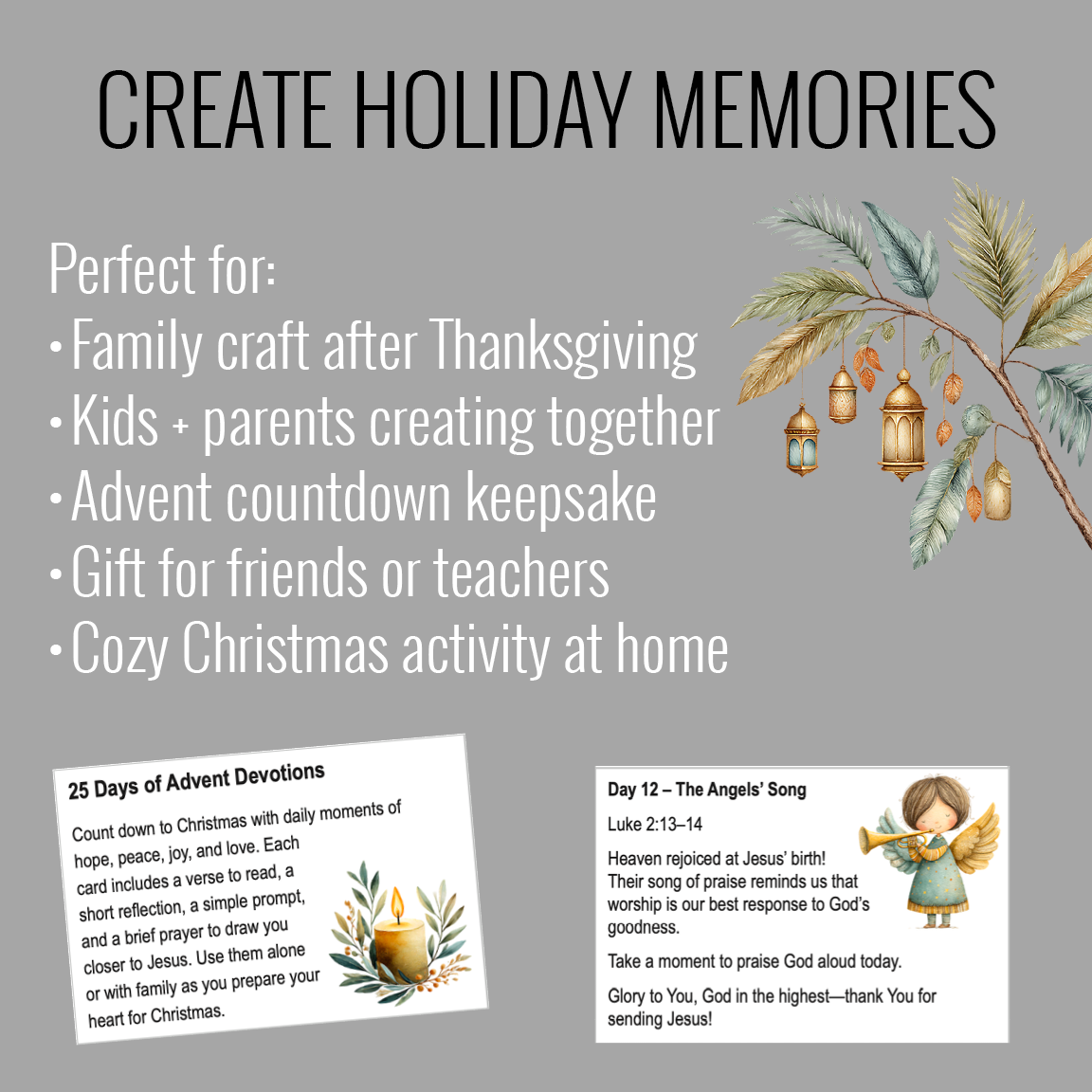 Christmas Advent Devotional Printable | DIY Advent Craft and Family Activity | 25-Day Countdown with Scripture and Prayer